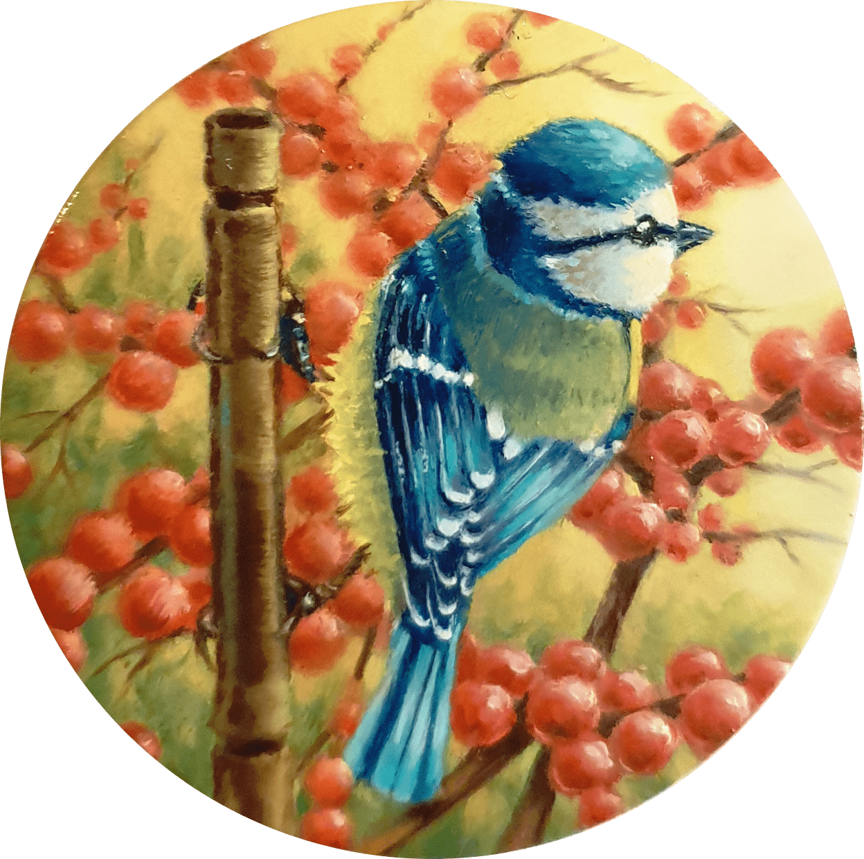Mésange bleue peinture miniature