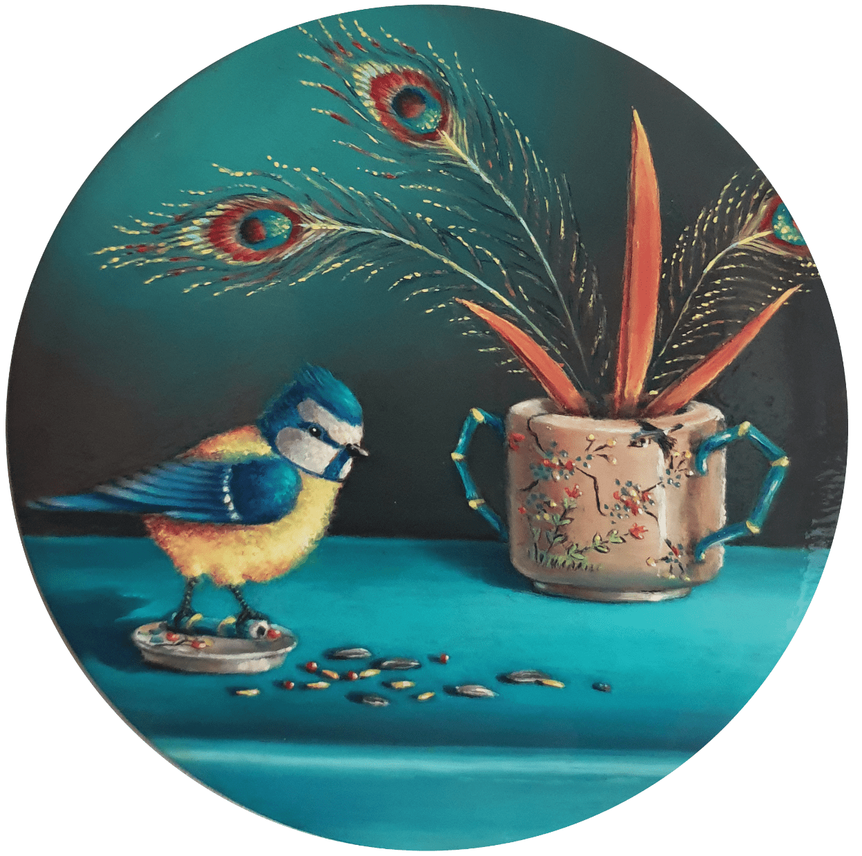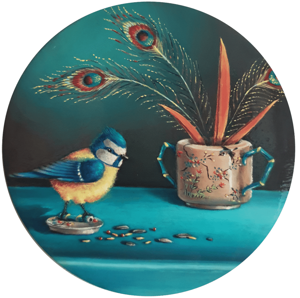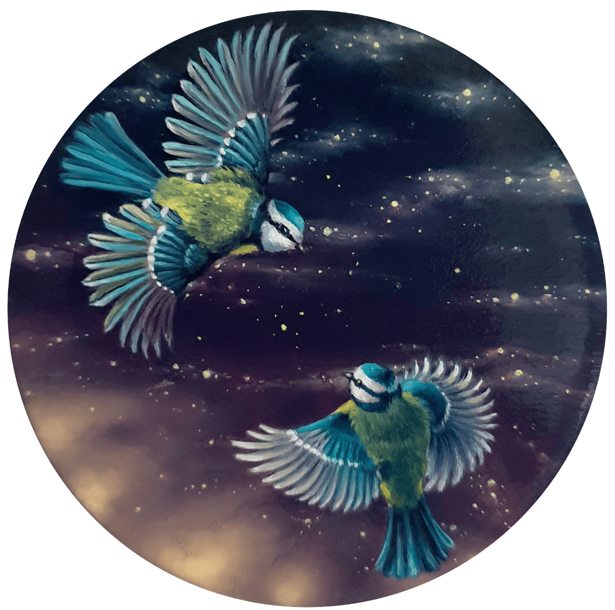 Peinture mini huile cuivre mésanges bleues