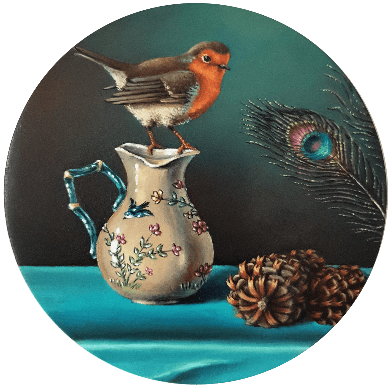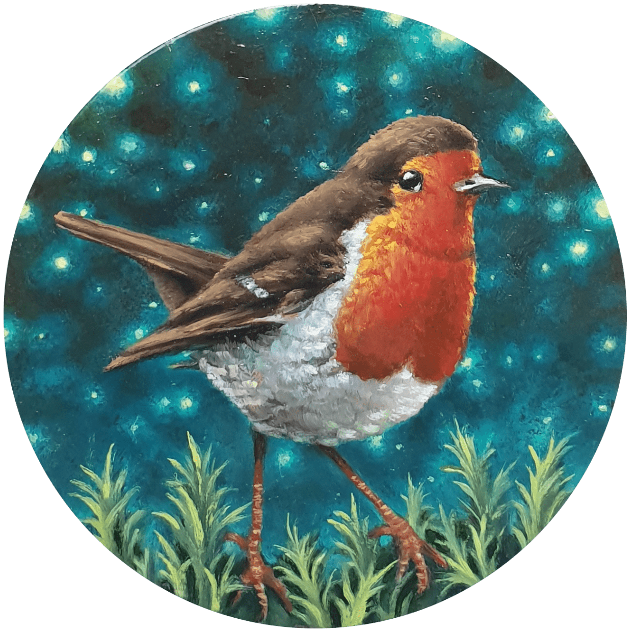 Rouge gorge peinture huile miniature sur cuivre